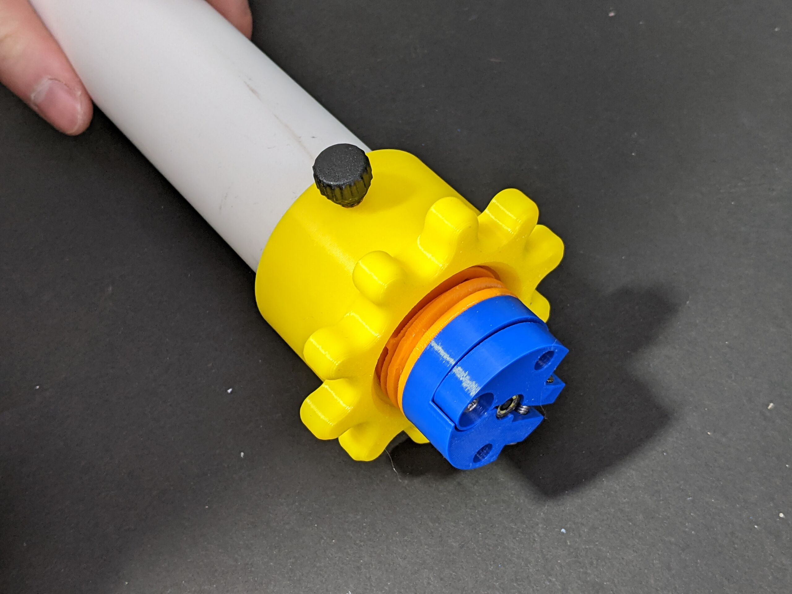 Attach the tensioning cap to the PVC tube and hold in place using a thumb screw